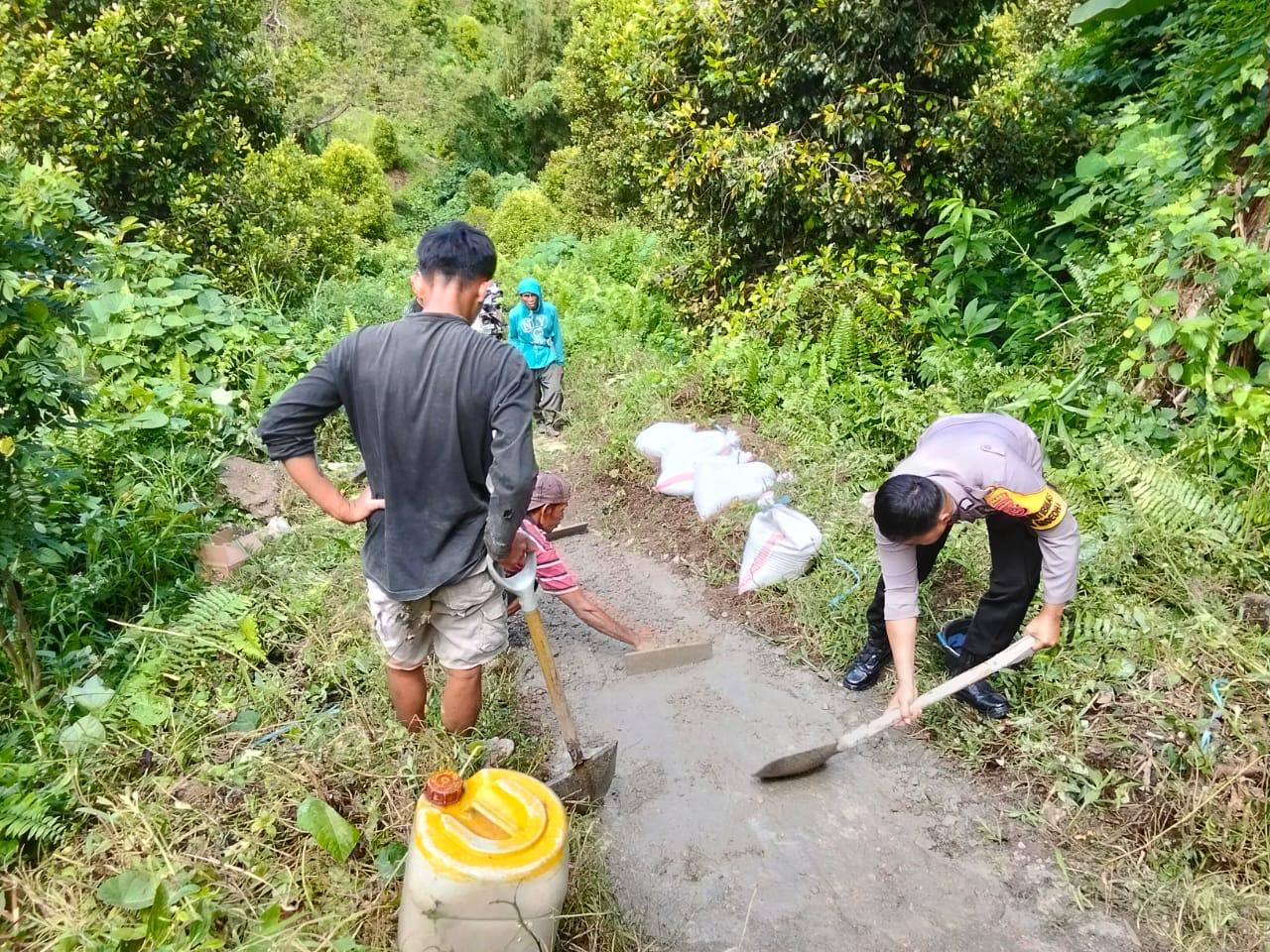 Bhabinkamtibmas Bersama Warga Desa Delang-delang Perbaiki Jalan Tani dan Gaungkan Pesan Damai Jelang Pemilukada 2024