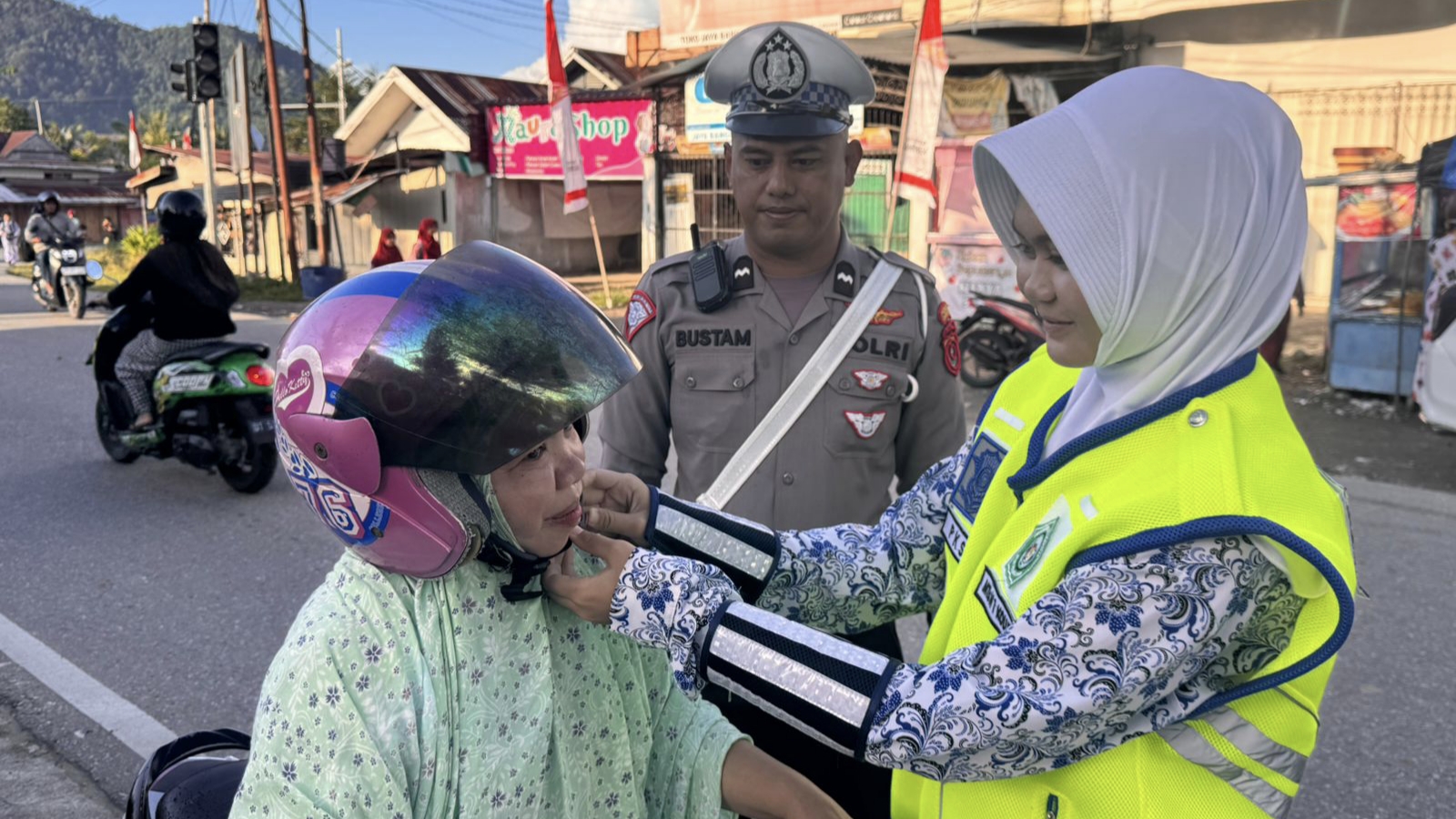 Dedikasinya tak berhenti di gerbang sekolah. AIPDA Bustam juga sering terlihat di pasar, terminal, dan tempat-tempat umum lainnya. Ia dengan ramah menyapa para pengendara, mengingatkan mereka untuk melengkapi surat-surat kendaraan dan selalu berhati-hati. Pendekatan persuasif yang ia gunakan berhasil mengubah stigma polisi yang sering dianggap menakutkan, menjadi sosok yang ramah dan mengayomi.
