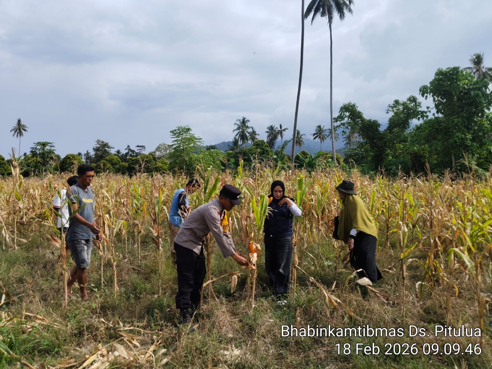 Wujud kepedulian Polri terhadap kesejahteraan masyarakat kembali ditunjukkan oleh Bhabinkamtibmas Desa Pitulua Polsek Lasusua Polres Kolaka Utara Polda Sulawesi Tenggara, AIPDA Sachrul, yang turun langsung mendampingi warga dalam kegiatan panen jagung di Desa Pitulua, Rabu (18 Februari 2026) mulai pukul 09.00 WITA hingga selesai.