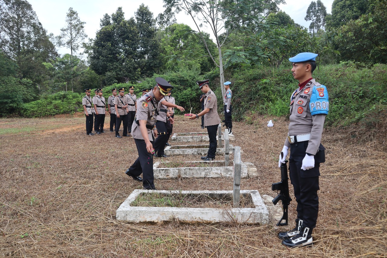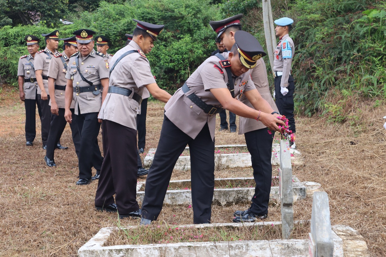 Tabur bunga di pusara-pusara pahlawan menjadi puncak upacara. Setiap kelopak bunga yang jatuh di atas nisan adalah simbol terima kasih dan janji untuk meneruskan perjuangan mereka. “Pahlawan telah memberikan segalanya untuk kita. Melalui ziarah ini, kami ingin menanamkan nilai-nilai kepahlawanan kepada setiap anggota Polri, agar senantiasa berdedikasi dalam menjalankan tugas sebagai pelindung, pengayom, dan pelayan masyarakat,” tutur Kapolres dalam sambutannya.
