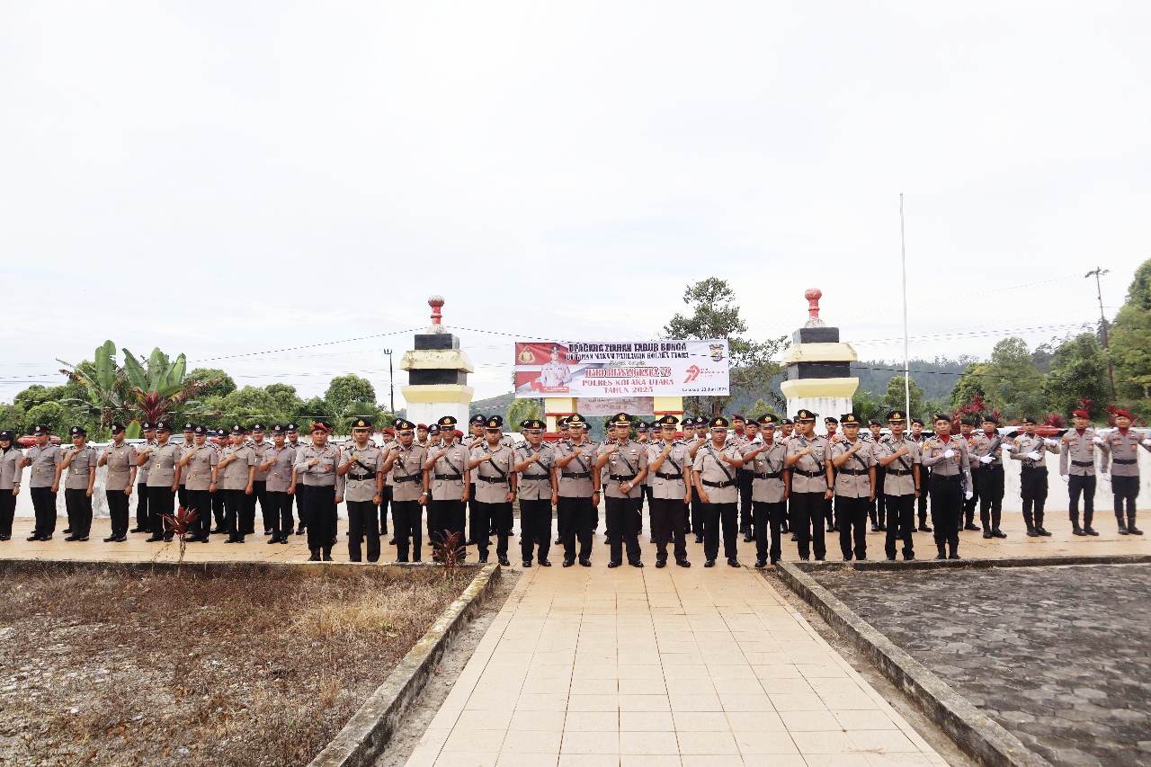 Kapolres Kolaka Utara, AKBP R. Todoan A. Gultom, S.I.K. memimpin langsung jalannya upacara yang diikuti oleh Wakapolres kolaka Utara Dr. Gusti Komang Sulastra, S.H., M.H. seluruh pejabat utama, perwira, dan anggota Polres Kolaka Utara. Dengan langkah tegap dan seragam kebesaran, mereka berbaris rapi, memancarkan aura kesetiaan dan dedikasi. Mengheningkan cipta dipimpin oleh Kapolres, diikuti dengan peletakan karangan bunga di Taman Makam pahlawan, menjadi momen paling mengharukan yang mengingatkan akan pengorbanan tak ternilai.