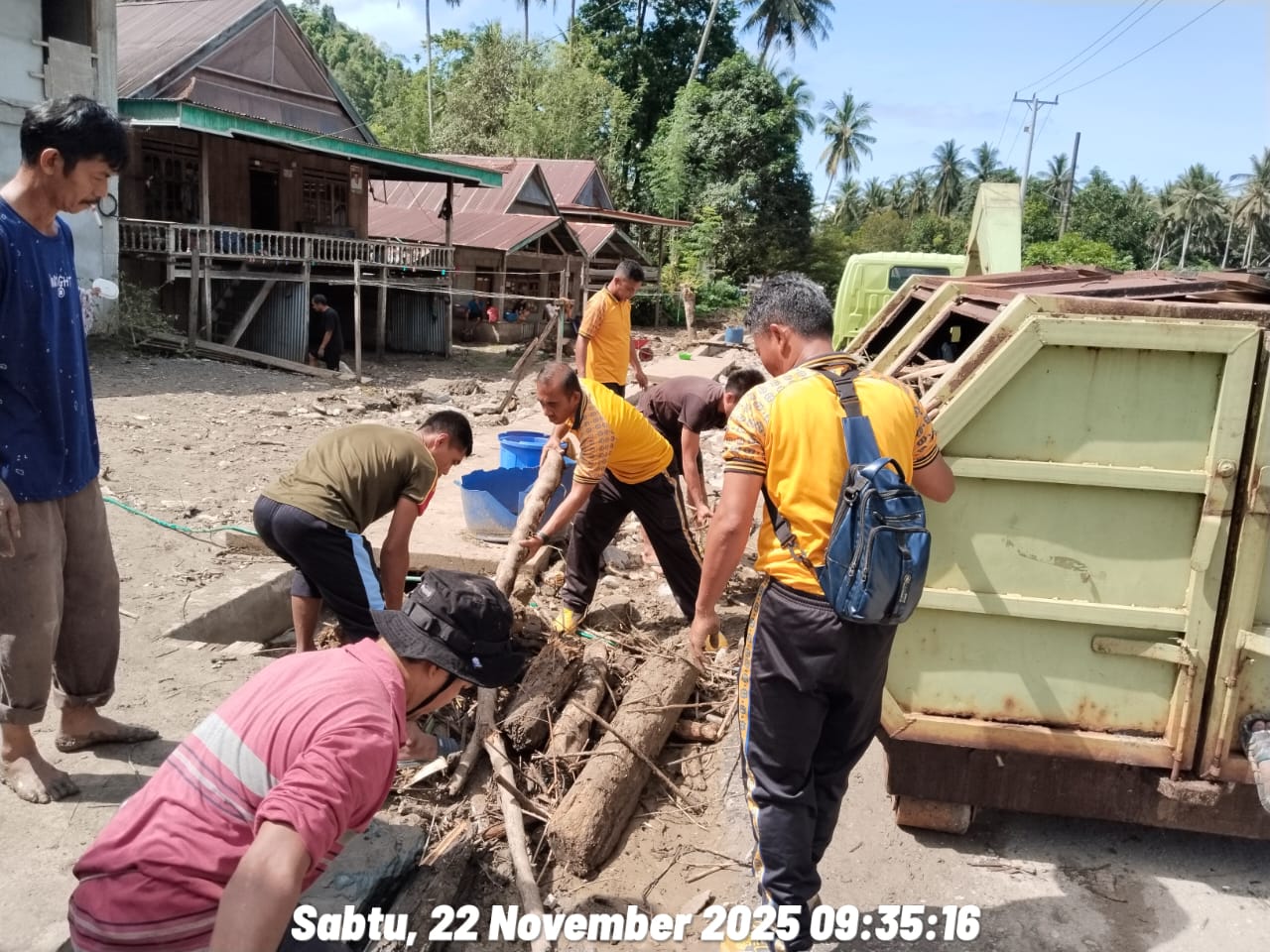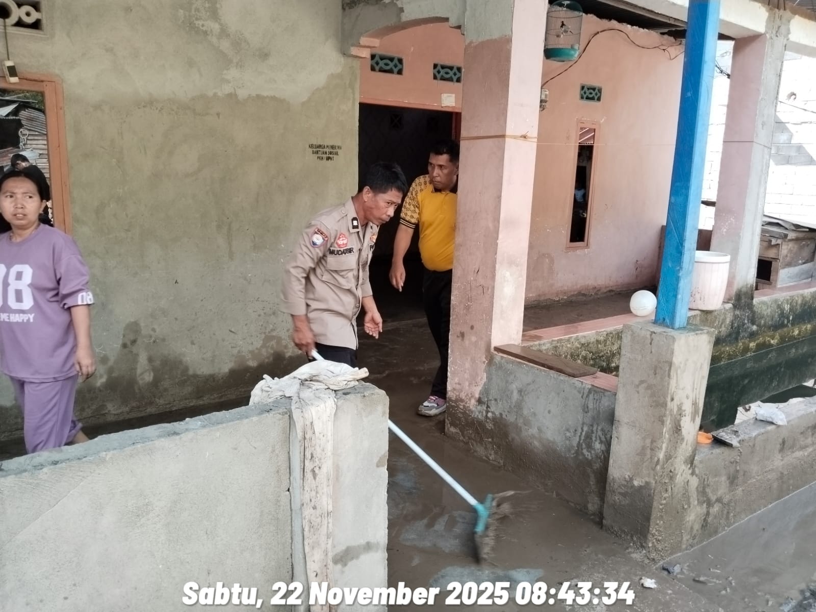 saat ini, kegiatan pembersihan masih berlangsung. Personel Polsek dan warga yang dikoordinasi Kades Marsuki bahu-membahu membersihkan lumpur tebal dari lantai, perabotan, dan halaman rumah warga, memastikan proses pemulihan pascabanjir dapat berjalan lancar.