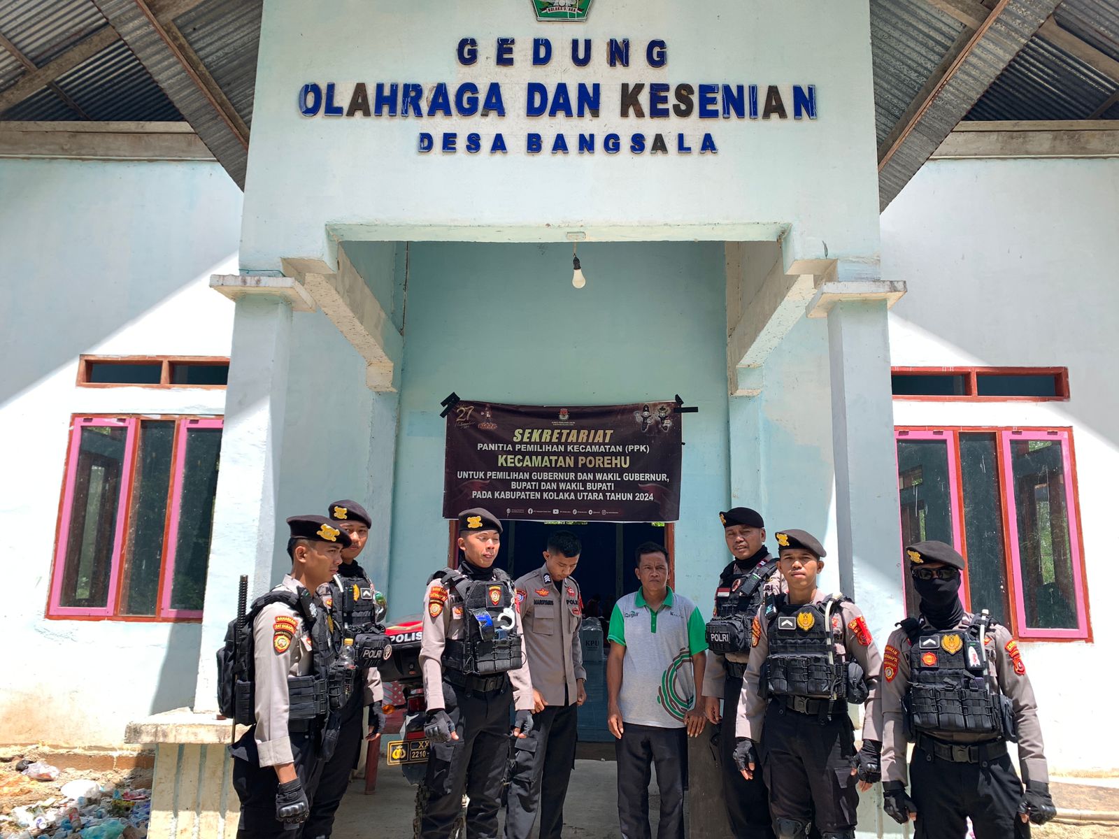 Personel Polres Kolaka Utara melaksanakan pengamanan logistik Pilkada Serentak Tahun 2024 di setiap Panitia Pemilihan Kecamatan (PPK) yang ada di wilayah Kabupaten Kolaka Utara.