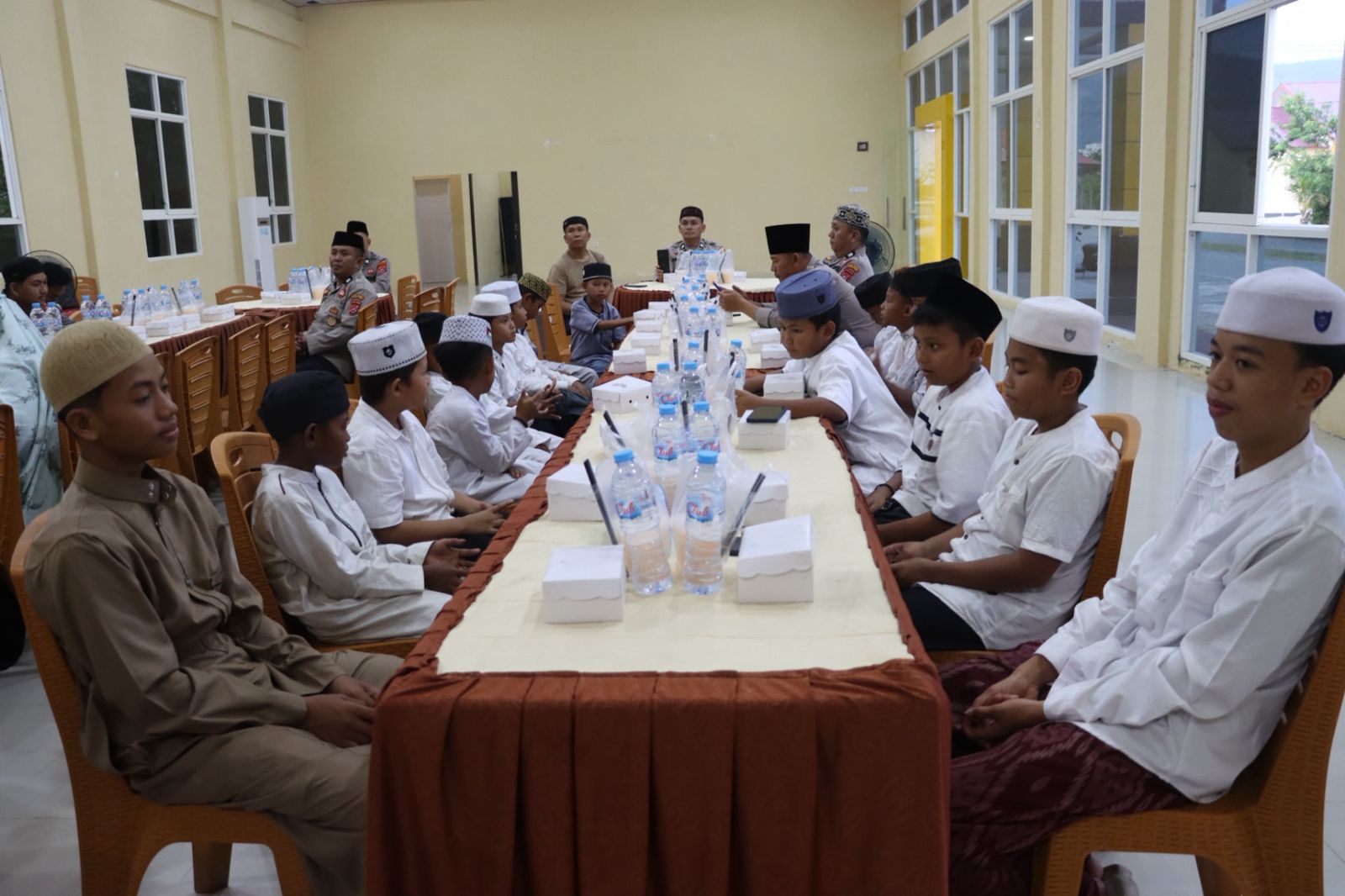 Suasana penuh kebersamaan terlihat saat para peserta berkumpul dan berbagi kebahagiaan menjelang waktu berbuka puasa. Kegiatan ini menjadi momentum untuk mempererat tali silaturahmi antara Polri dan masyarakat, khususnya dengan para santri serta anak yatim dan dhuafa.