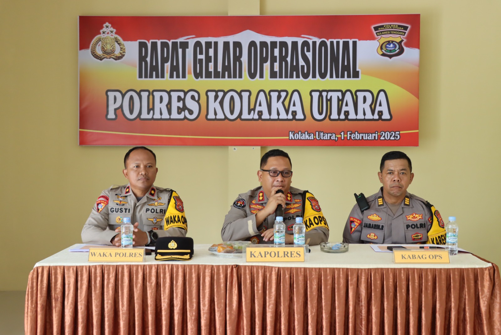Kolaka Utara, 1 Februari 2025 – Polres Kolaka Utara menggelar kegiatan Gelar Operasional (GO) dan Analisis serta Evaluasi (Anev) Sitkamtibmas untuk bulan Januari 2025. Acara ini berlangsung di aula Mapolres Kolaka Utara pada Sabtu pagi pukul 09.00 WITA dan dipimpin langsung oleh Kapolres Kolaka Utara, AKBP Arif Irawan, SH., SIK., MH.