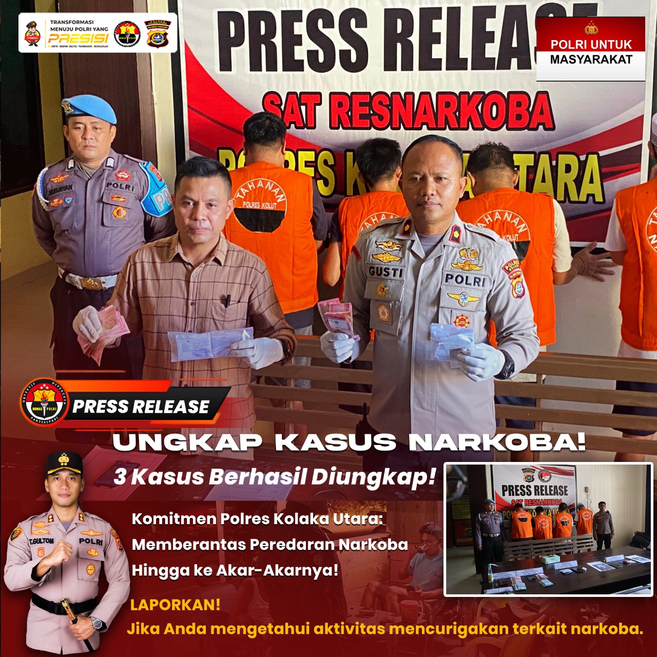Polres Kolaka Utara menegaskan akan terus meningkatkan kegiatan preventif dan represif guna menekan angka peredaran narkotika, serta membuka ruang kolaborasi dengan masyarakat, tokoh agama, tokoh pemuda, dan seluruh stakeholder untuk menciptakan lingkungan yang aman dan sehat dari bahaya narkoba.