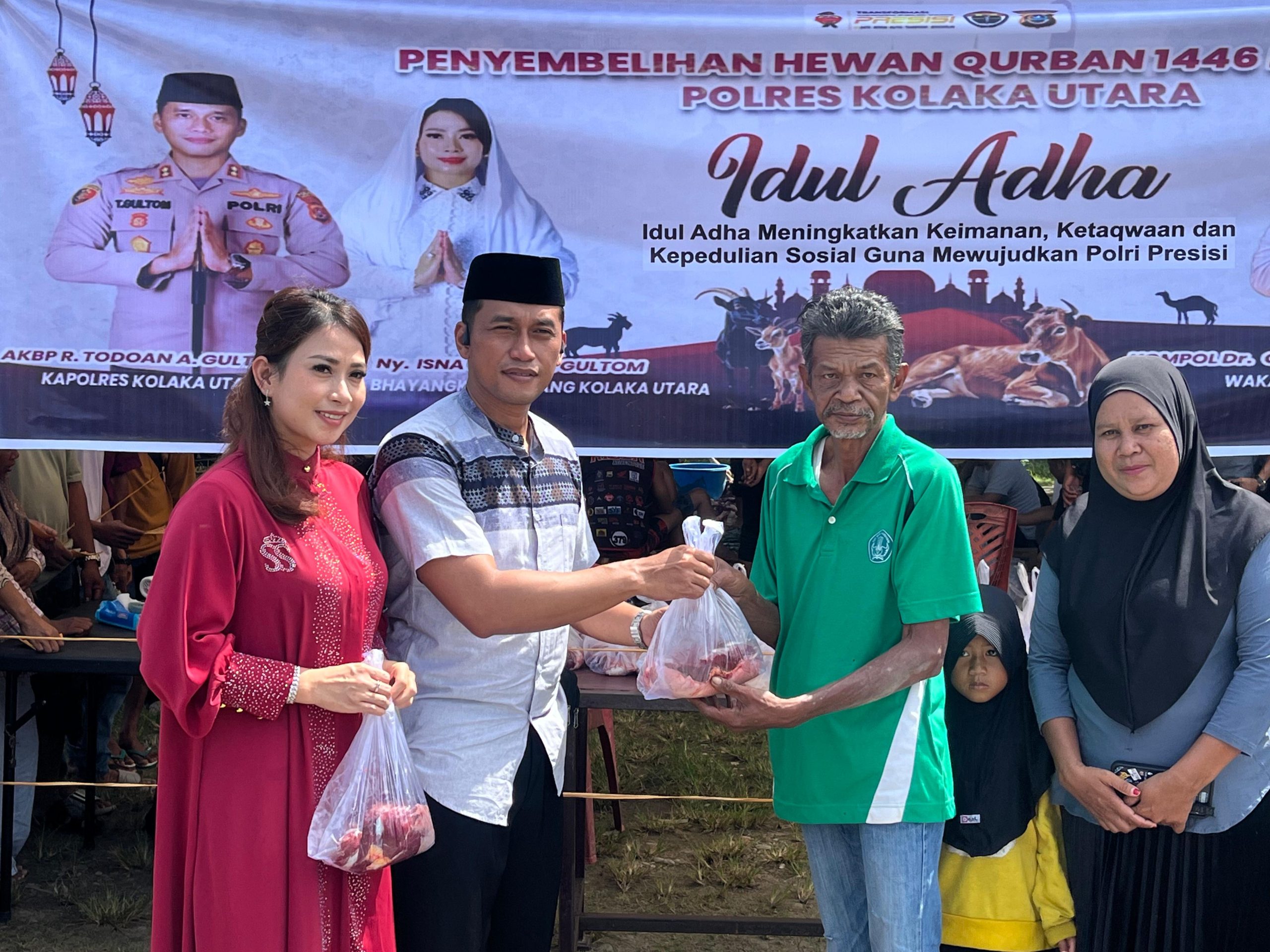 Setelah Sholat Idul Adha selesai, Polres Kolaka Utara melanjutkan dengan prosesi pemotongan 14 ekor sapi qurban. Daging qurban tersebut kemudian dibagikan kepada masyarakat sekitar dan personil Polres Kolaka Utara. Kegiatan qurban ini merupakan bentuk kepedulian Polres Kolaka Utara terhadap masyarakat dan sebagai implementasi dari nilai-nilai Idul Adha.
