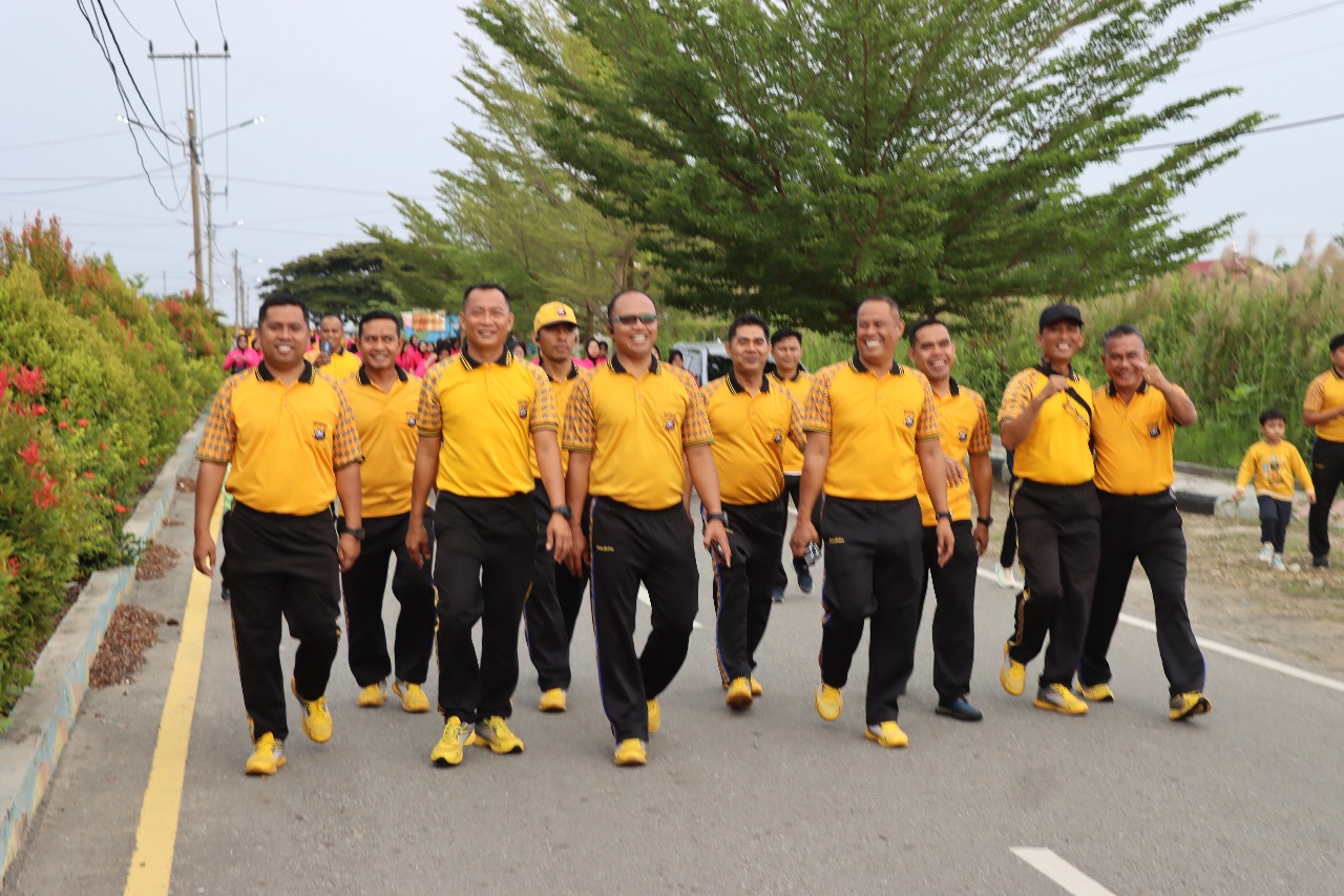 Kegiatan yang mengusung tema “Mari kita menjaga kebugaran tubuh dan kebersamaan melalui olah raga bersama dan jalan santai” ini dipimpin langsung oleh Wakapolres Kolaka Utara Kompol Dr. Gusti Komang Sulastra, S.H., M.H., mewakili Kapolres Kolaka Utara. Turut hadir dalam acara ini para PJU Polres Kolaka Utara, para Kapolsek Jajaran Polres Kolaka Utara, serta Ketua Bhayangkari Polres Kolaka Utara, Ny. Isna Todoan Gultom, bersama seluruh personel dan ASN beserta ibu Bhayangkari.